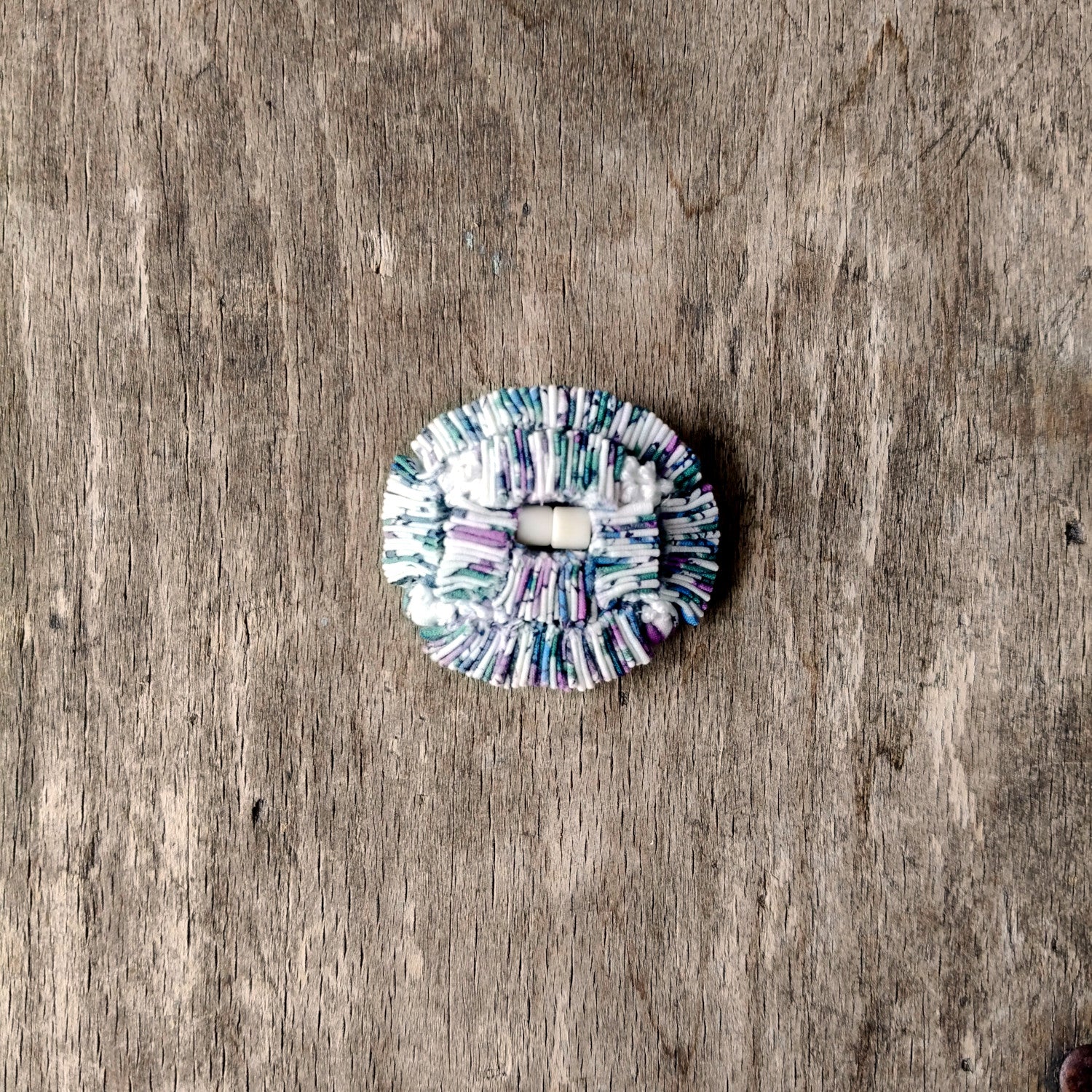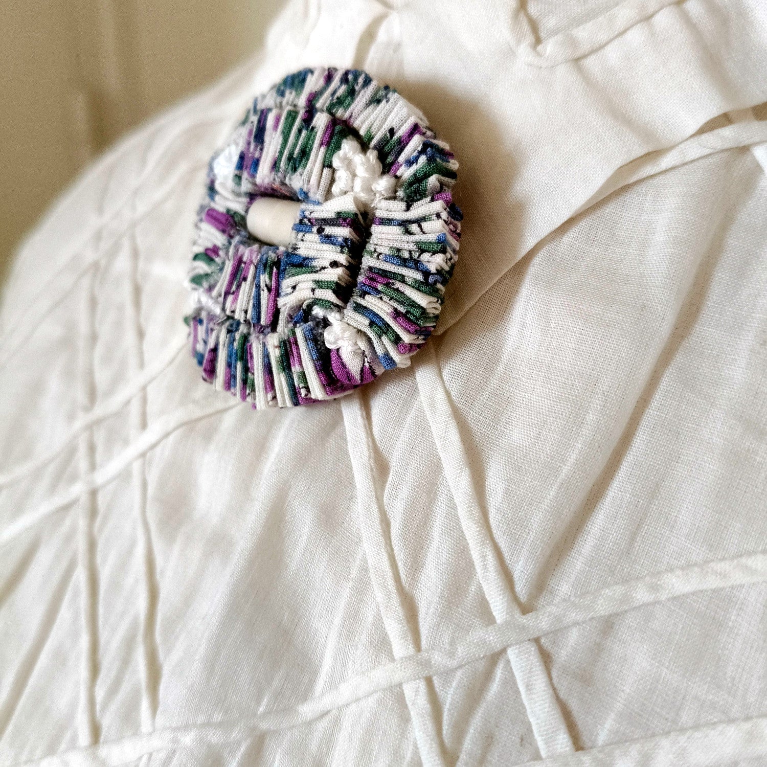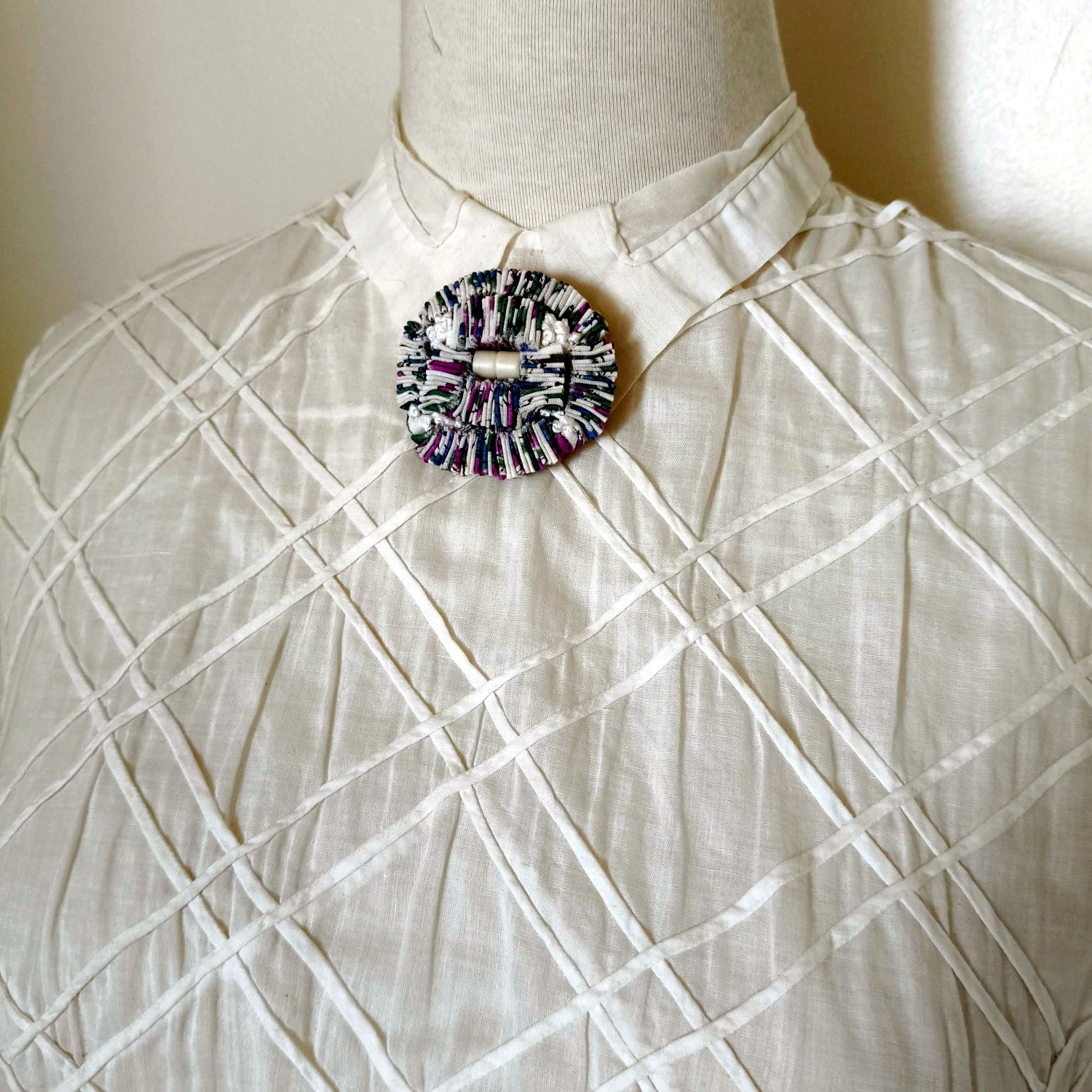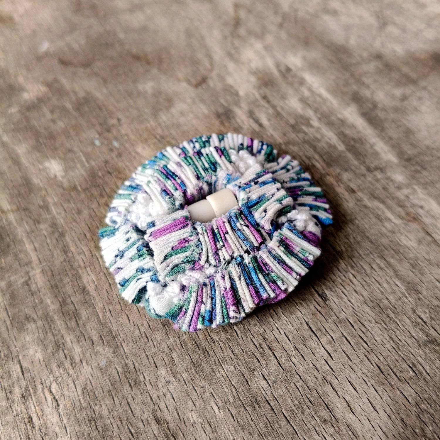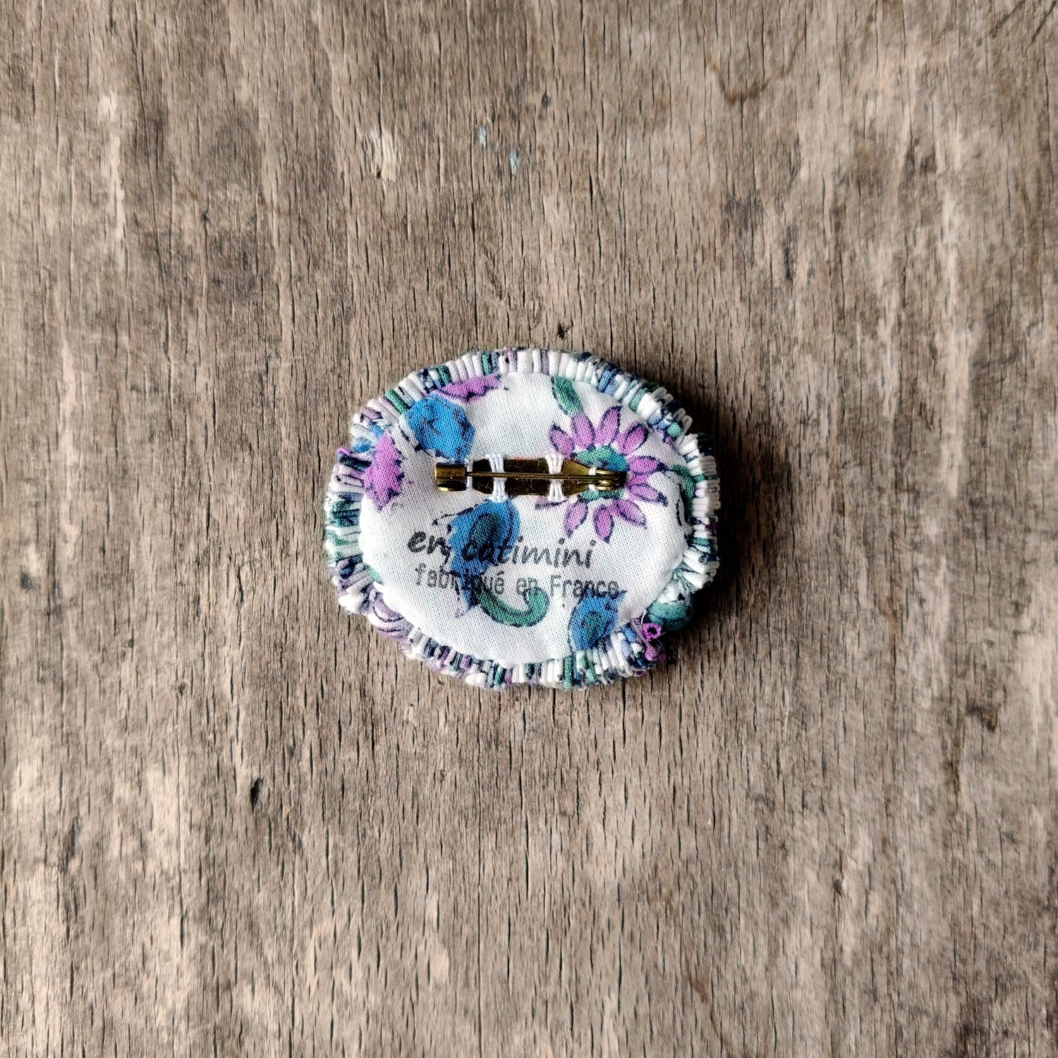 Broche réalisée en cousant de petits morceaux de tissu en coton indien