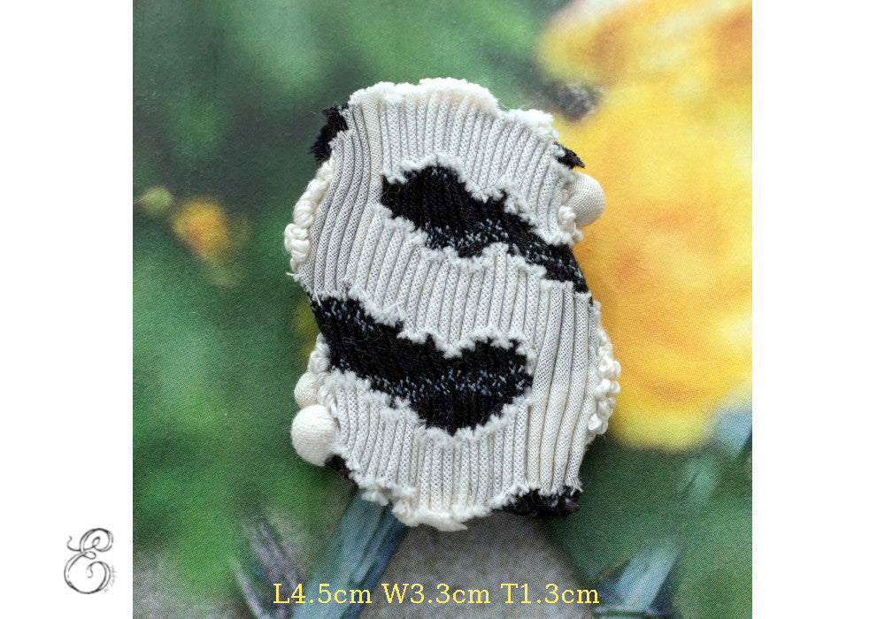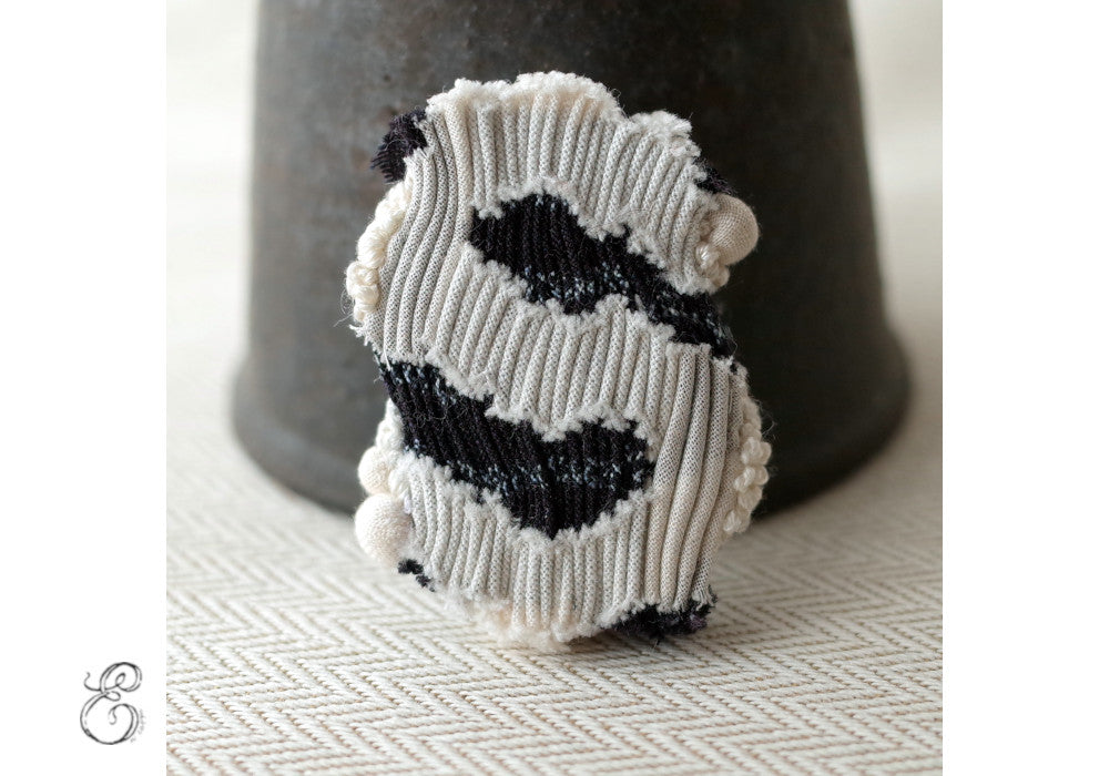Broche réalisée en cousant de petits morceaux de tissu en lin