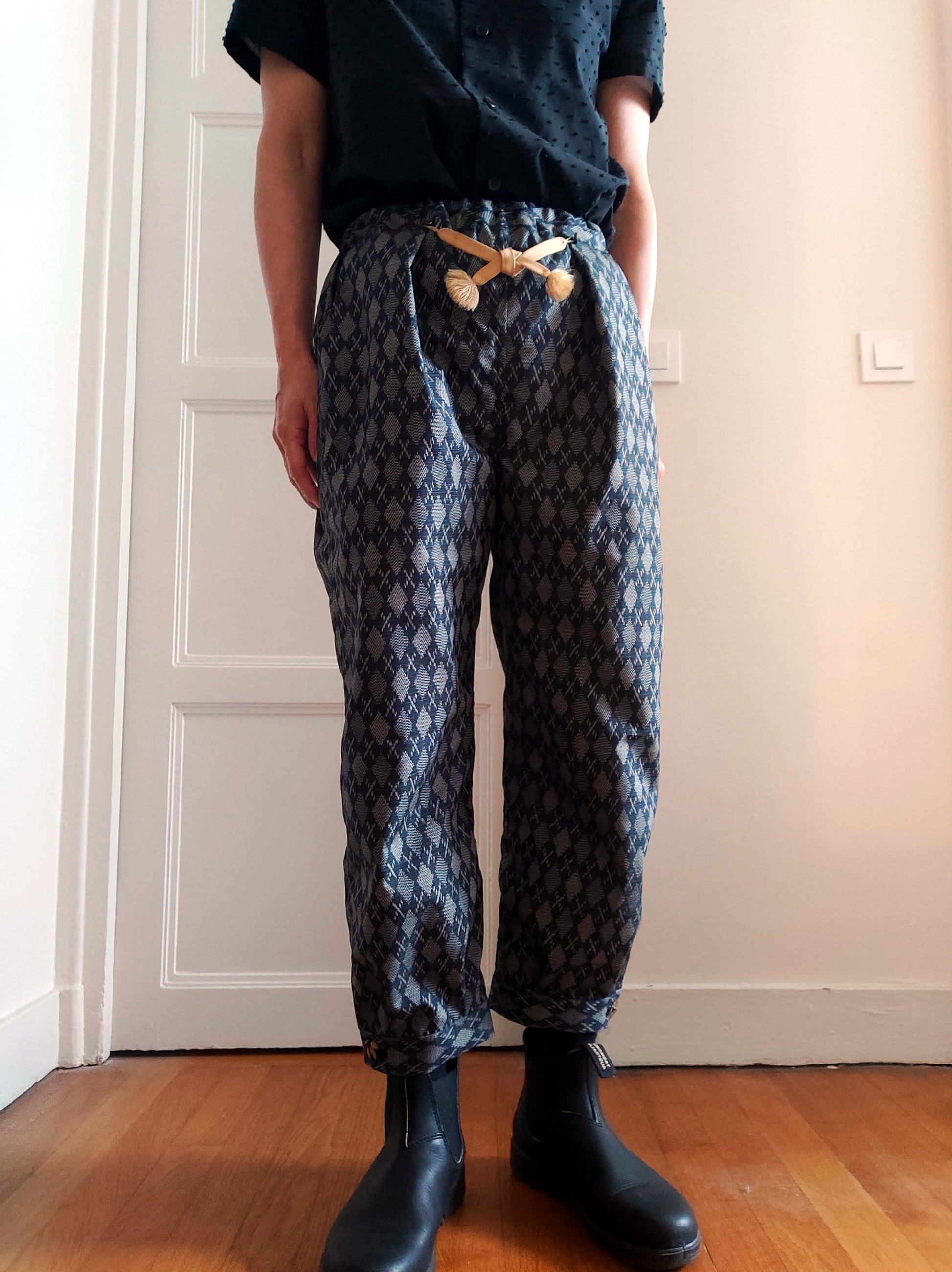 Un pantalon crée avec un vieux Kimono de notre grand-mère.