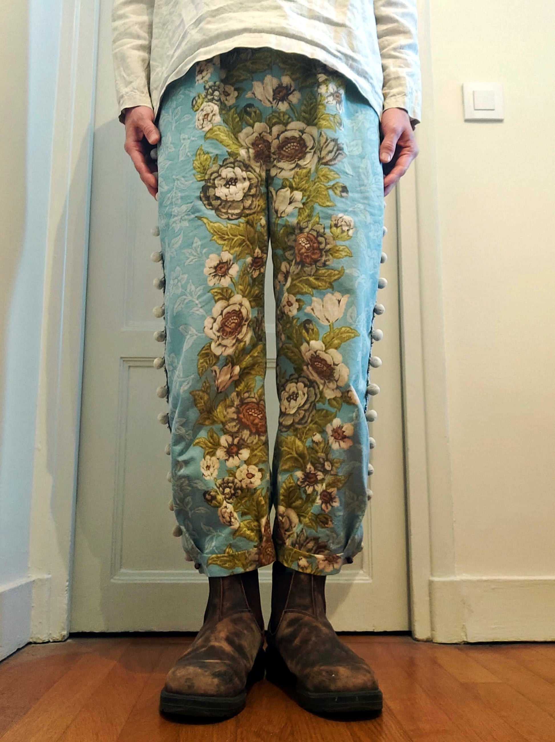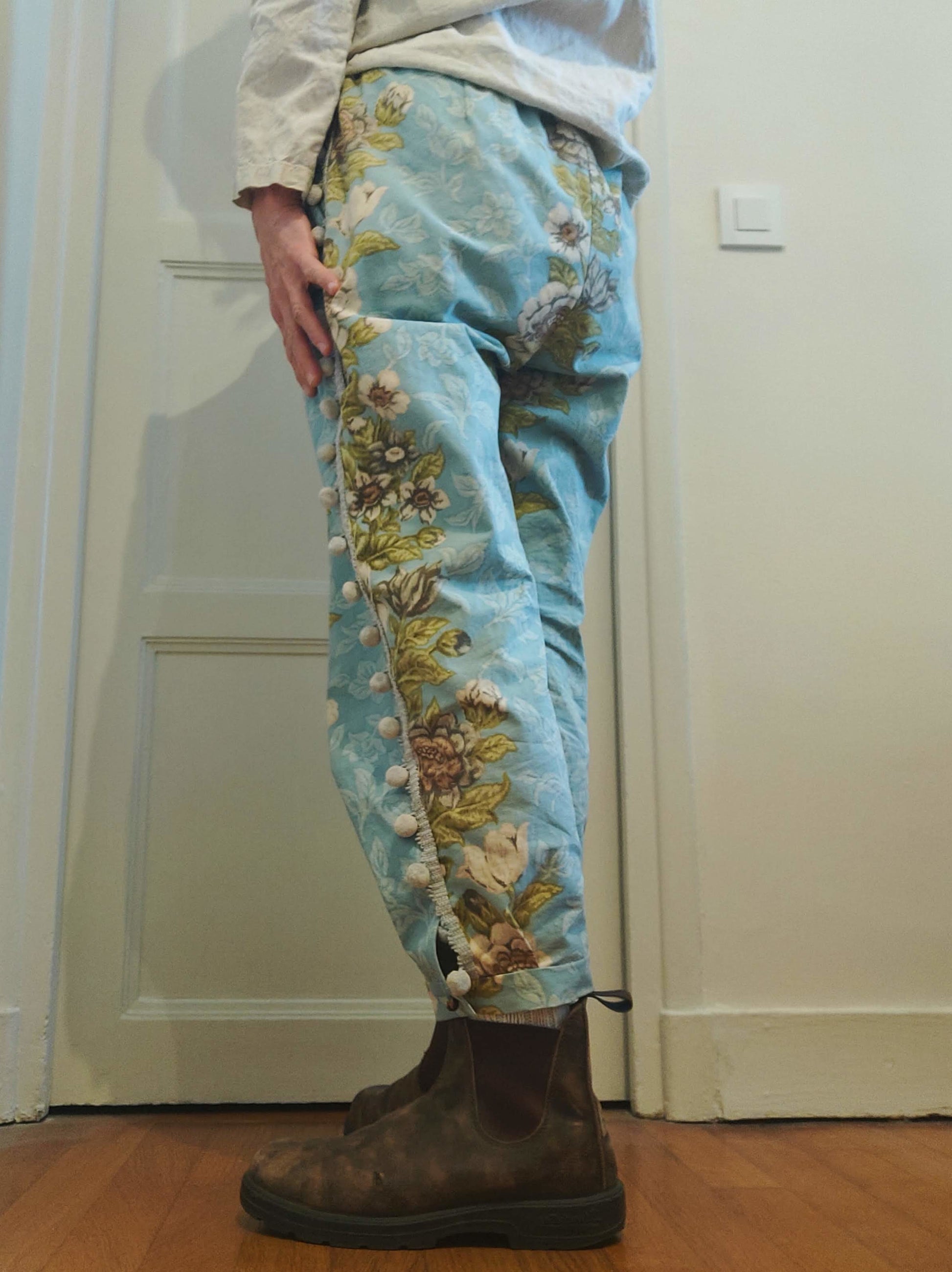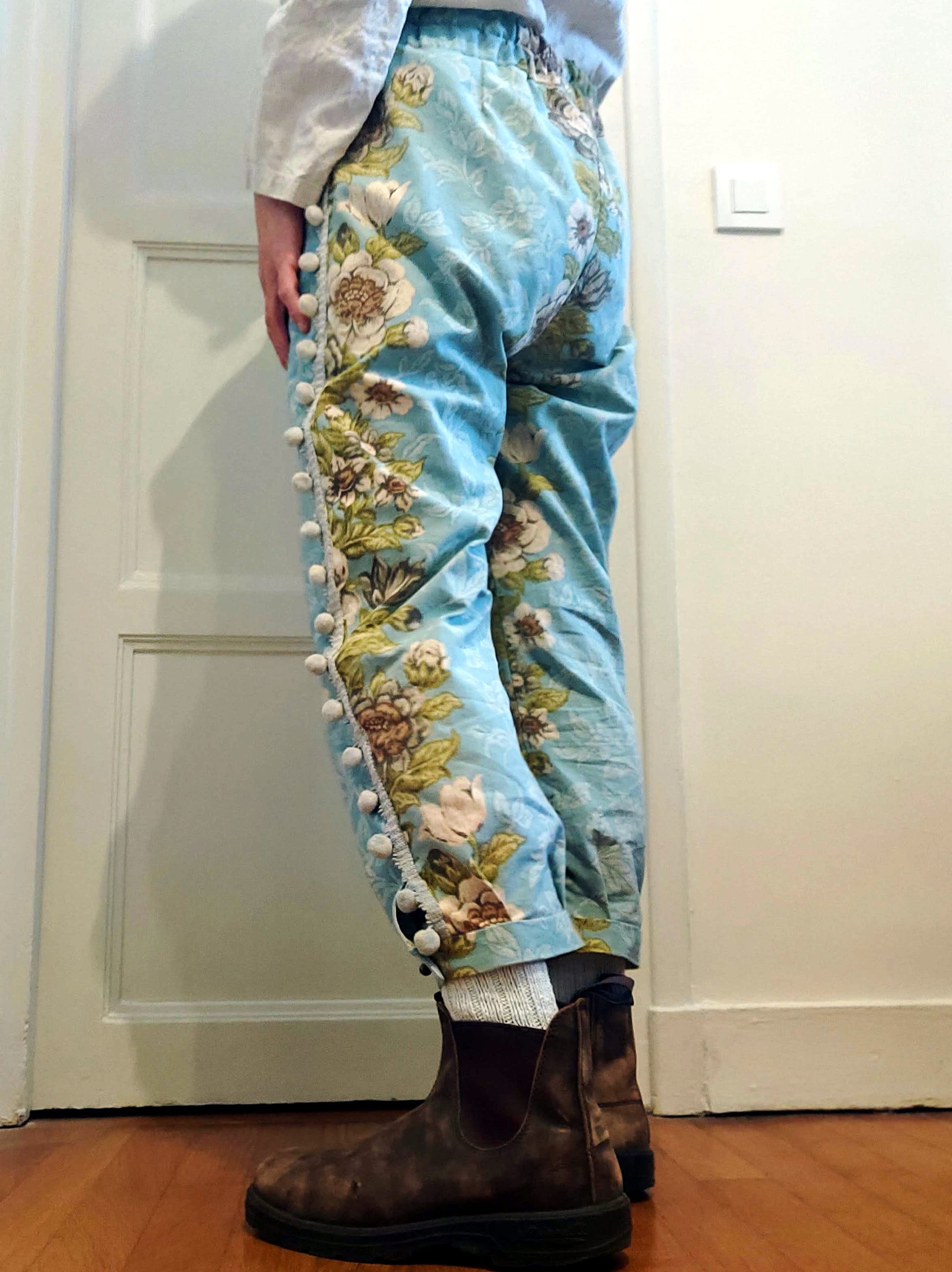 Un pantalon crée avec un rideau ancien.